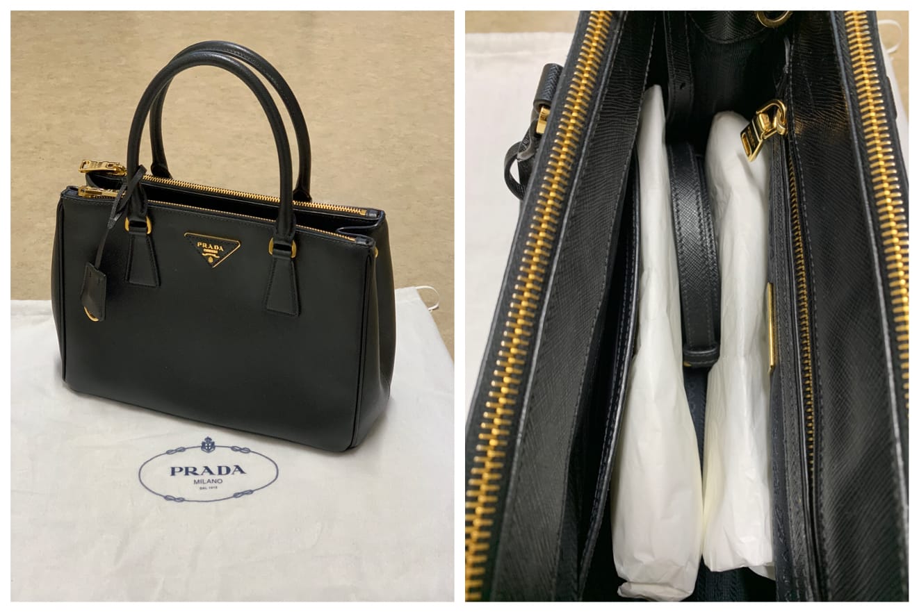 プラダから発売されている人気のハンドバッグのお買取です。ショルダーストラップも付属しており、手持ちも肩掛けもどちらのスタイルも楽しむことができます。