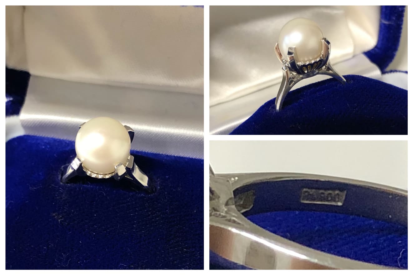 真珠がセットされた指輪でしたが、残念ながらこちらのお真珠にはお値段がつかず、地金のプラチナの評価のみのお買取でした。