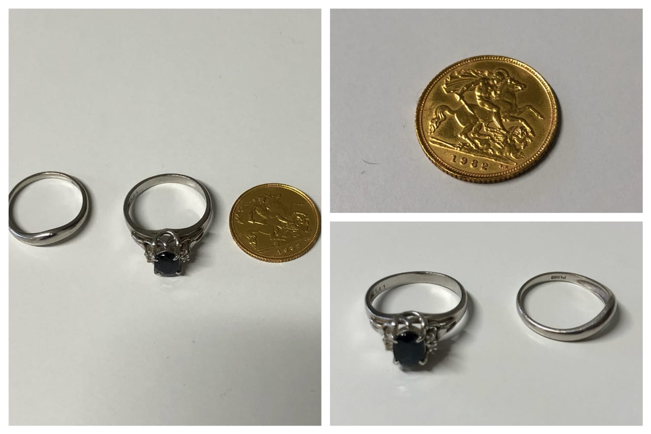 プラチナでできた指輪と、金のメダルのお買取でした。